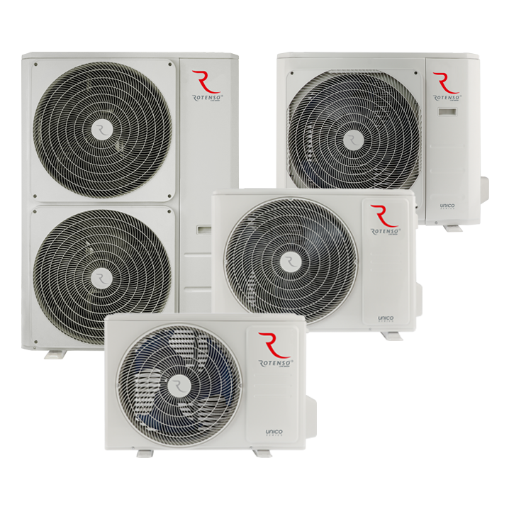 Rotenso Unico āra bloks (X paaudze) ir moderns un efektīvs bloks, kas paredzēts gaisa kondicionieriem, kurus izmanto visu gadu. Īpašais bloka dizains novērš bloka apledošanu, un tas ir papildus aprīkots ar pilienu teknes sildītāju un kompresora kartera sildītāju.